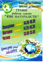 Графік роботи гуртка "ЮНІ НАТУРАЛІСТИ"